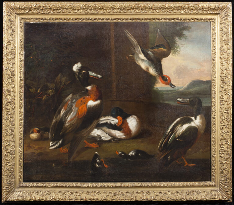 Chickens, Chicks, a Cockerel and Ducks in a Landscape