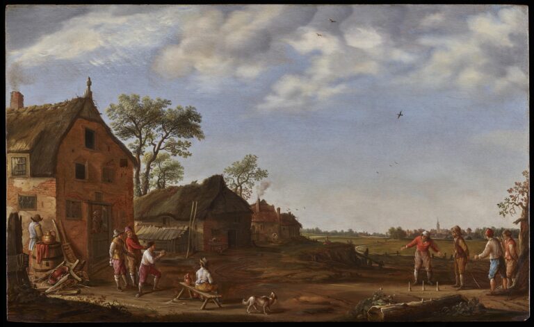 A Landscape with Figures playing Skittles by an Inn