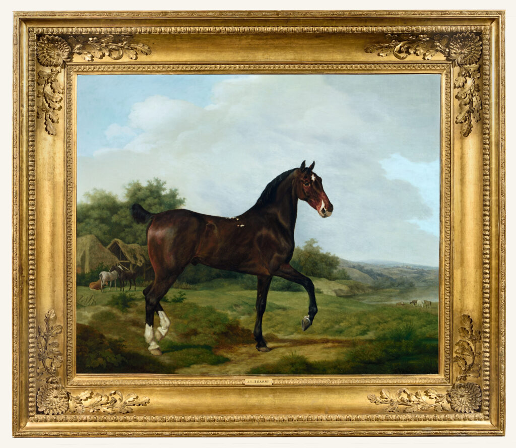 This previously unpublished portrait of a bay hunter is a superb example of Jacques-Laurent Agasse’s sensitive observation of the natural world. His scientific approach to rendering the creatures he depicted and highly refined technique made him one of the greatest animal painters ever to have worked in England, arguably second only to his predecessor George Stubbs.