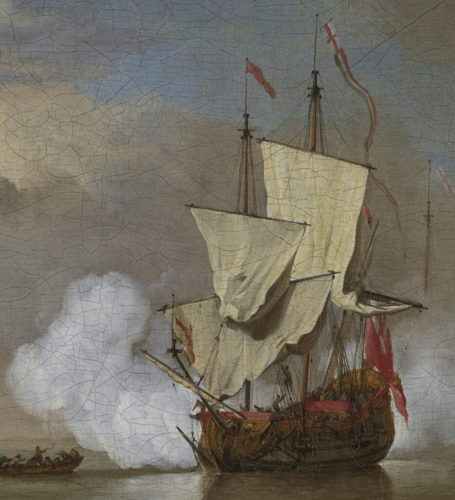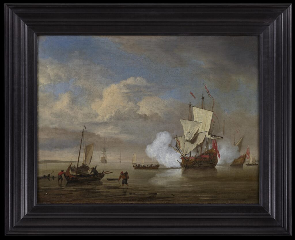 We are grateful to Dr Remmelt Daalder who has inspected photographs of the painting and believes it to be probably entirely by Willem van de Velde II. Dr Daalder is expected to see the painting first-hand in March 2026 at which time he hopes to confirm his opinion.